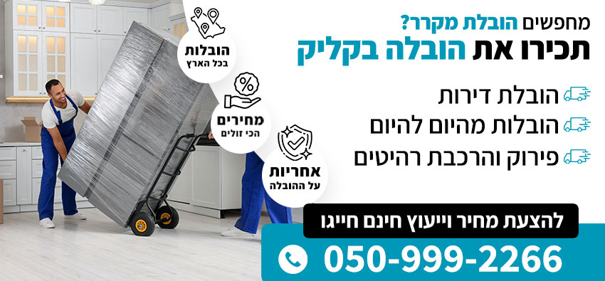 | מקרר בנפח של עד 400 ליטר | בטווח של עד 30 ק"מ | החל מ-299 ₪ |